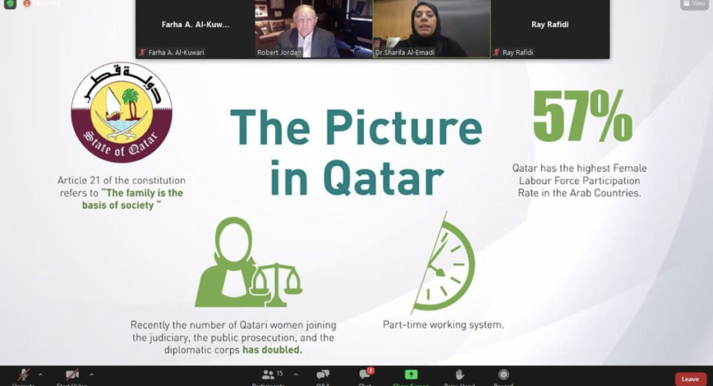The main speaker in the panel, Al Emadi stressed that Qatar provided an exemplary model in family wellbeing. Among Arab countries, Qatar has the highest rate of female participation in the labor force, standing at 57%, including in the the judiciary, public prosecution and diplomatic corps
